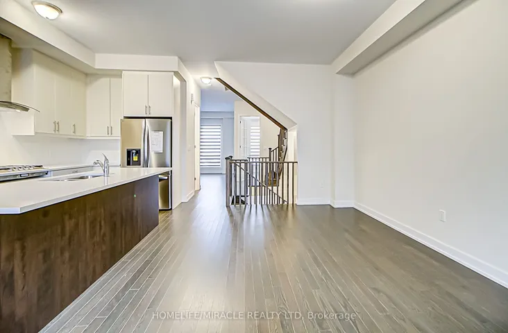 +"PublicRemarks": "Gorgeous townhome (2,360 sq. ft) facing 4-acre park located in the family friendly community of Joshua Creek. This home features hardwood throughout, countless upgrades including quartz counters, undermount sinks, luxurious vanities, high ceilings (10 ft. on main and 9 ft. on upper) and an elegant oak staircase. Chef's kitchen features B/I Stainless Steel appliances and extended upper cabinets. Primary bedroom has a 5 pc. spa-like ensuite with double vanity, freestanding tub and standing glass shower. Main floor has separate living and family rooms, along with an office. Ground floor is above grade and features another bedroom and an ensuite. Lots of parking with a double car garage and 2 spots on the driveway. Upstairs Laundry. Basement is unfinished for additional storage. Two sprawling terraces for entertaining friends and family. Unbeatable location close to highways, top schools, grocery, restaurants etc."