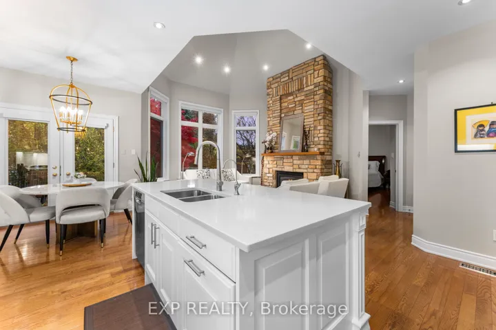 +"PublicRemarks": "Welcome to 448 Stratford Road, where refined elegance meets tranquil living in one of Oakville's most desirable neighborhoods. Nestled in the prestigious Woodhaven community, this one-owner luxury bungalow-loft offers exceptional craftsmanship, modern updates, and serene views backing onto a protected conservation area. From the moment you arrive, the professionally landscaped grounds and inviting stone interlock walkway set the tone for the sophistication found within. The private backyard oasis features a beautiful water feature, built-in stone seating, and lush natural surroundings, creating the perfect setting for relaxation or entertaining. Step inside to discover a bright, open-concept layout showcasing an impressive two-story great room with floor-to-ceiling stone gas fireplace, remote-controlled blinds, and hardwood flooring throughout the main level. The updated gourmet kitchen boasts new granite countertops, built-in appliances, under-cabinet lighting, and ample space for culinary creativity. The main-floor primary suite offers a peaceful retreat, featuring a 5-piece ensuite with jacuzzi tub, double sinks, and a spacious walk-in closet. Upstairs, you'll find two generous bedrooms, including one with a private 4-piece ensuite, ideal for guests or family. The fully finished lower level expands your living space with a gym area, family room, sitting area, and 3-piece bath - perfect for recreation or relaxation. Located just steps from heritage trails, parks, and top-rated schools, with easy access to shopping, restaurants, and major highways, this property delivers the best of luxury, comfort, and convenience. Features: New roof and gutters Aug 2025, kitchen renovation 2022, (B/i) oven and microwave combo 2024, A/c and furnace replaced 2017, painting (bedroom) 2025 and (main floor) 2022, remote blinds 2023, replaced two single garage doors to one double garage door with overhead clearance 2014."