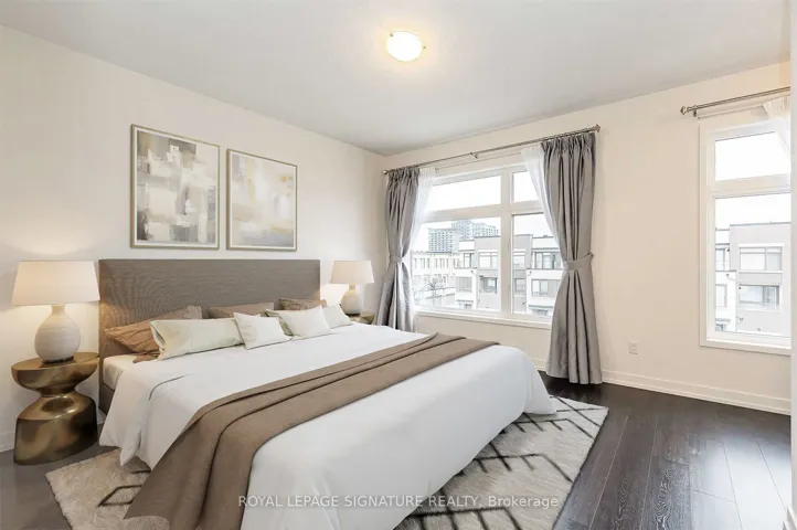 Step into this beautifully designed modern 3 bedroom 4-bathroom townhome, where contemporary style meets everyday comfort. Flooded with natural light, the home offers a 20-ft frontage lot and an airy open-concept layout featuring high ceilings, sleek espresso-toned flooring, a welcoming living and dining space, and a chef-inspired kitchen with gorgeous countertops and a rich backsplash, stainless steel appliances, and lots of cupboard space. The adjoining breakfast area opens to a private balcony, ideal for summer barbecues or quiet evenings outdoors. Upstairs, the primary suite provides a relaxing retreat with a modern bathroom ensuite, spacious walk-in closet, and its own private balcony. The additional bedrooms are bright and spacious, offering plenty of closet space for growing families or guests. A convenient two-piece washroom on the second floor adds extra functionality, while the main level walk-out to the backyard expands the living space. This home is the perfect blend of modern elegance and practicality. Enjoy a smart, efficient floor plan with every inch of space thoughtfully used and easy access to the garage from inside the home. Set in a thriving community close to the new hospital, parks, schools, shopping, trails, and transit, it offers an exceptional lifestyle for families and professionals.
