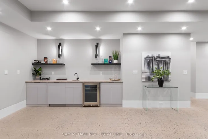 +"PublicRemarks": "Welcome to this resplendent custom-built masterpiece in Southeast Oakville, where flawless contemporary design meets the serenity of lakeside living. Steps from scenic parks and every desired amenity, this home offers over 7,400 SF of exquisitely curated living space designed for those who appreciate sophistication and comfort in equal measure.From the moment you enter, the open-concept layout invites a seamless flow between elegant entertaining and relaxed everyday living. The chef's kitchen, anchored by a grand Caesarstone island and outfitted with premium Miele appliances, effortlessly connects to the dining area, perfect for hosting intimate dinners or grand celebrations. Wine enthusiasts will delight in the temperature-controlled 648-bottle cellar, while the floor-to-ceiling double-sided fireplace brings warmth. The primary suite is a private sanctuary, complete with a serene balcony, a designer walk-in closet, and a spa-inspired ensuite featuring heated floors and a double-sided fireplace. Three additional bedrooms, each with their own ensuites, ensure every guest enjoys comfort and privacy. The lower level offers a full lifestyle experience, featuring a nanny suite, fitness area, sauna, wet bar, and a spacious recreation room with a walk-up to the entertainer's backyard. Step outside to a resort-like setting with a heated inground pool, hot tub, outdoor BBQ station, and pool house, all designed for effortless entertaining year-round. Additional highlights include White Oak hardwood flooring, porcelain tiles, LED lighting, built-in speakers, and a heated driveway. This home is a true testament to craftsmanship and thoughtful design."