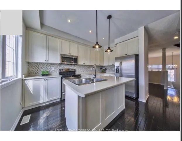 +"PublicRemarks": "Available December 1st! Stunning 1-year-old Executive End-Unit Townhome in Kleinburg. This bright and spacious home offers 4 bedrooms and 3 washrooms, featuring hardwood flooring on the main level. Enjoy an inviting Great Room with a gas fireplace, and a large family-sized kitchen complete with an island, upgraded cabinets, granite countertops, and stainless steel appliances.Tenant to pay all utilities and handle snow removal."
