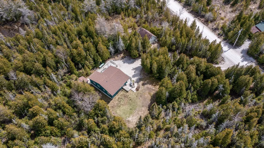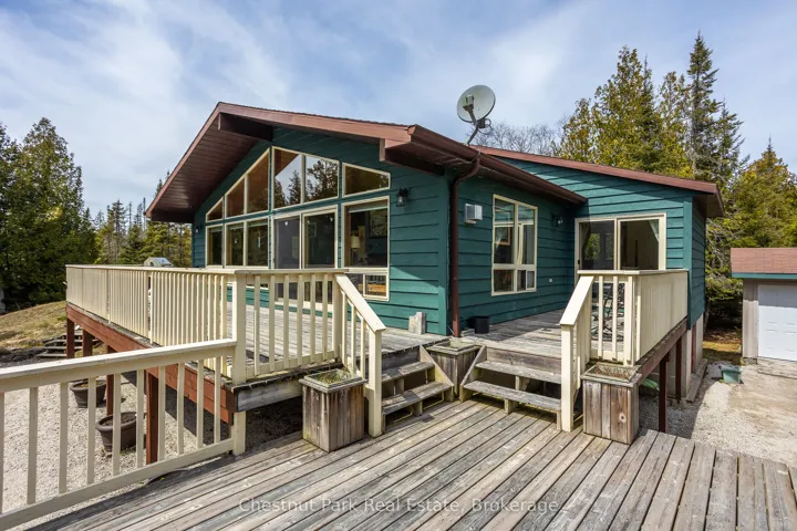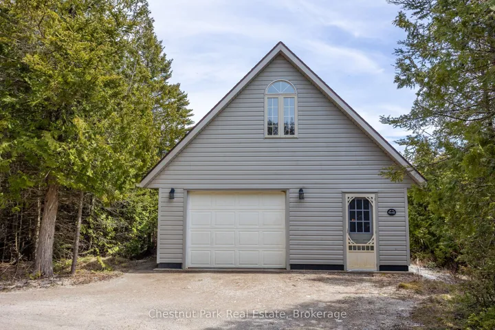 Nestled among the trees on a peaceful 2.1-acre lot, this inviting raised bungalow offers the perfect blend of comfort and nature. The open-concept design is ideal for entertaining, featuring warm v-match pine walls and a spacious living room with a cozy propane fireplace. The functional kitchen provides ample counter space, while a wall of windows floods the space with natural light and frames stunning views of the western sky and starlit nights. The home includes two generous-sized bedrooms, with the primary bedroom offering patio door access to a side deck perfect for enjoying your morning coffee while watching the abundance of birds in the nearby trees. A third bedroom has been thoughtfully converted into a laundry room with a dedicated office space. The 3-piece bathroom features a low-threshold walk-in shower for added convenience. A detached garage provides both parking and a dedicated workshop area, with a finished upper level for guest overflow complete with a compostable toilet. Lake access is just a short walk down the road, offering the perfect spot to launch a kayak or enjoy a refreshing summer swim. Relax to the soothing sound of waves rolling in from Lake Huron. Located just 15 minutes from Tobermory and close to Singing Sands Beach, Bruce Peninsula National Park, and other local attractions, this property is a peaceful retreat with easy access to everything the area has to offer. Don’t miss this rare opportunity to own a private escape in the heart of nature!
