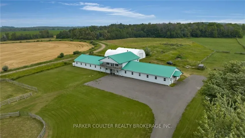 +"PublicRemarks": "Nestled upon 108.771 acres of gently rolling land outside the Greenbelt, this agricultural-zoned sanctuary lies close to modern amenities. Just 4 miles W of Orangeville and a mile N of Hwy 109, its prime position next to the industrial lands on County Rd 11 and the proximity to the Farmington employment area underscore its future development potential. The house, built in 1995, spans approx 3,000 sq ft with 4 bedrooms, 3 baths, and a capacious 3-car garage. Recent upgrades include roof 2017, furnace 2016, water heater 2015, upgraded well system/water purification 2021, and eaves 2017. Its interior exudes warmth with solid hardwood floors, 9 ceilings, and bay windows. A modern kitchen and large deck overlooking the estate. Home is fitted with a generator. Above the barn, there's a stunning apartment spanning 1,748 sq ft with 3 bedrooms and 1 bath. Featuring soaring cathedral ceilings, solid maple cabinets, hardwood floors, and an inviting 8 x 38 covered deck that offers panoramic sunset views. The Dutch Masters Barn design constructed in 2003 is fully insulated and houses 24 stalls with top-tier amenities. Featuring double wash stall, designated rooms for feed and equipment storage, heated washroom, a tactfully designed tack room, and an adjoining laundry/furnace room with direct access to the apartment. Equestrian enthusiasts will be drawn to the professionally installed 6-furlong training track. This venue harks back to the estate's illustrious history as a breeding, training, and racing center. Additionally you will find a commodious hay barn stands ready, alongside an equipment storage barn equipped with an extensive electrical capacity. And, for practical needs, there's a concrete-block-lined manure storage area. The estate's pastures are vast and well-maintained. With approximately 19,000 linear feet of three-board oak fencing, 8 distinct paddocks, a 70 round pen, and 5 expansive pastures. Currently approx 60 workable acres with room to expand."
