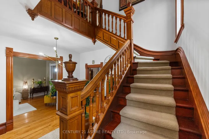 Step into timeless elegance with this magnificent 3-storey Victorian brick manor, nestled on one of Centre Town Pembroke’s most charming tree-lined streets. This architectural gem blends historic charm, refined craftsmanship, and spacious luxury, offering an inviting sanctuary filled with warmth and character. Step unto a grand, sweeping front porch adorned with original ornate woodwork and a stately decorative glass wood door that sets an entrance into exquisite details found within. Inside, you’ll find soaring ceilings, intricate hardwood floors, and remarkable woodwork that echo the grace of Victorian decor. The third level features two spacious bedrooms, a flexible storage room, and a stunning 4-piece bath with a clawfoot tub and ceiling skylight perfect for unwinding in vintage luxury. On the second floor, three bright bedrooms await, including a lavish master suite complete with a spa-inspired 4-piece ensuite and walk-in closet. Stained-glass windows add a touch of artistry and romance, casting rich color and light throughout the home. Enjoy modern convenience of a laundry suite adjacent to a powder room and a second 4-piece ensuite bath with lots of wood cabinetry for opulent comfort. The main level is both grand and welcoming, offering a formal dining room with generous windows, a commodious family room and an elegant grand living room. The gourmet eat-in kitchen features solid wood cabinetry, granite countertops, and opens into a cozy four-season sunroom with a charming wood stove. Step outside to your own private garden paradise with lush perennials, privacy hedges, and an in-ground sprinkler system for easy maintenance. The lower level is equally impressive, featuring workshop area, a handcrafted stone wine cellar, a serene sauna, a 3-piece bath, and abundant storage. Heated by an updated natural gas boiler, this one-of-a-kind residence offers rare character, luxury, and lasting comfort. 24 hour irrevocable required on all offers