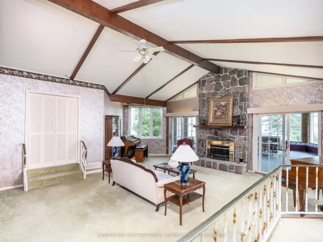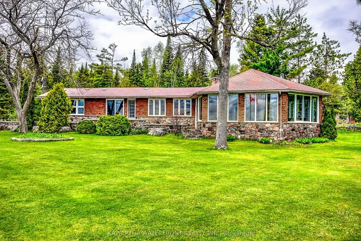 This is undoubtably one of the finest waterfront properties in all of the western Kawarthas. Sited on Rocky Point on Pigeon Lake, the property features 400 ft of superlative waterfront ranging from child-friendly wade-in beach to dive-off-the-shore into 20 ft deep weed-free water that is perfect for swimming. The 1.5 acre lot is level and nicely landscaped, extremely private and provides spectacular panoramic vistas across the north, east and south arms of the lake. The brick and stone lake house is ideally positioned to take advantage of the views and provides almost 3,000 sq ft. of living space, highlighted by a 700 sq ft circular sunroom and a living room with vaulted ceilings and stone fireplace. Other tremendous assets on the property include an extra large and insulated 4 car garage, an exceedingly rare double wetslip boat house, a brick circular driveway, and a beautiful flagstone patio. The property is located near the end of prestigious Riverside Drive, which is a paved municipally maintained road, and is a 5 minute drive to Bobcaygeon, one of the loveliest towns in the Kawarthas with excellent shopping and restaurants. Pigeon Lake is noted for its great fishing and boating opportunities across 5 lock-free lakes. This one-of-a-kind property is the type that can handle a substantial investment without fear of hitting a valuation ceiling.
