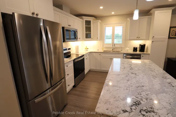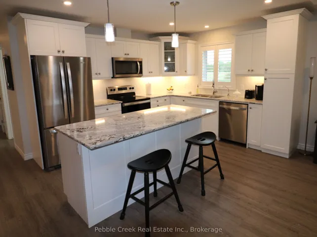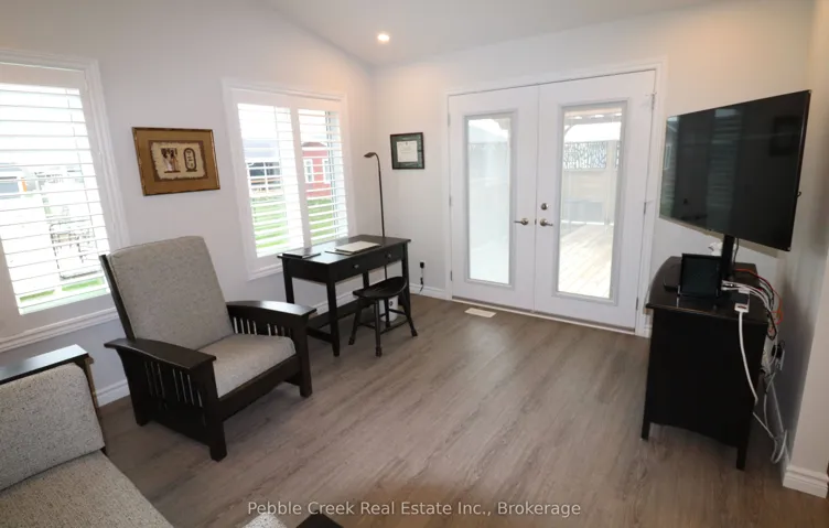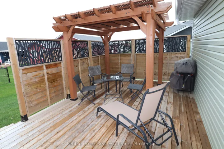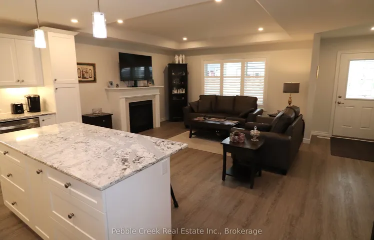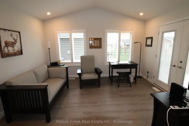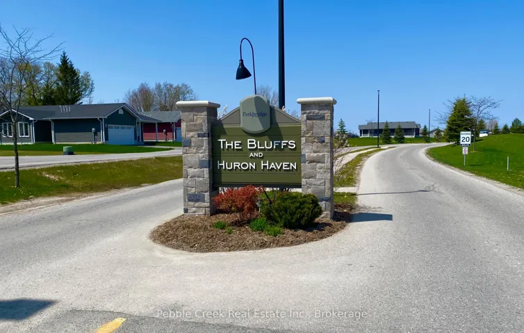 Prime location! This Cliffside B with Sunroom model offers 1594 sq ft of living space and is situated on a premium outside lot at The Bluffs! Just imagine the lifestyle, living along the shores of Lake Huron, close to shopping and fantastic golf courses along with your own private community recreation center complete with library, party rooms, sauna and indoor pool! This gorgeous home offers an extensive list of upgrades and is an absolute pleasure to show! Features include a large custom kitchen with crown moulding, huge center island, pantry, upgraded appliances and quartz countertops. The living room boasts a gas fireplace and tray ceiling. Also located adjacent to the kitchen is a spacious dining room with tray ceiling. The sunroom sports a cathedral ceiling and terrace doors leading to a private wooden deck with natural gas BBQ hookup and quality constructed gazebo. Other features include a large primary bedroom with walk-in closet, 3 pc ensuite bath with upgraded shower and quartz countertop on the vanity. Just down the hall is a spacious second bedroom and 4 pc main bath with linen closet and quartz counter top on the vanity. California shutters and upgraded light fixtures are also prevalent throughout. There are plenty of storage options in the home as well including lots of closets and a full crawl space with concrete floor. There is also an attached two car garage with hook up for an electric vehicle! This home is truly one of the nicest in the community, so don’t delay, call your agent today for a private viewing!