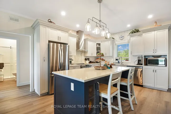 +"PublicRemarks": "Do NOT let this one get away.  Stately FABULOUS CUSTOM 1470 sq ft NEW BUILD (approx. 2yr) WITH FULL UNOBSTRUCTED VIEW OF THE GALOP CANAL AND ST. LAWRENCE RIVER SEAWAY.  (owner in process of getting river direct access and docking privileges). VIEW THE SHIPS, FISHERMEN AND RECREATIONAL BOATS WHILE ENJOYING YOUR WELCOMING FRONT PORCH AREA.  LANDSCAPED, PLANTED AND PERENNIAL BEDS.  WALK OUT BASEMENT, ALL WINDOWS EGRESS.  FULL 2 CAR GARAGE AND A CARPORT.  24 X 24 BUNKIE perfect for guests, children, office space/ NO POWER.  MAIN FLOOR HAS DIVIDED BEDROOM AREA OFF THE CENTER LIVING SPACE.  9 FOOT CEILINGS AND FULL NATURAL LIGHT. BLUE VINYL SIDING, LOW E VINYL WINDOWS, STEEL ROOF. (SEE DOCUMENTS FOR MORE INFORMATION). OPEN KITCHEN, DINING AND LIVING AREA with AN ALTERNATE HEAT SOURCE of a PROPANE FIREPLACE. LARGE PRIMARY BEDROOM HAS WALK IN CLOSET, AND FULL ENSUITE. MAIN FLOOR LAUNDRY IS OFF GARAGE DOOR WHICH ENTERS INTO THE MASTER WASHROOM AND BEDROOM, ALLOWING PRIVACY AND ACCESSIBILITY. GARAGE FULLY INSULATED.  LOW LOW COSTS FOR UTILITIES. (SEE DOCUMENTS) ALL NEW LG APPLIANCES. BASEMENT IS WALK OUT TO GARAGE. WATERFRONT ACCESS IS DO-ABLE THROUGH TOWNSHIP (INFO AV.).  DRIVEWAY TO HIGHWAY 2.  MAIL DELIVERY TO FRONT OF PROPERTY.  GENERLINK HOOK UP FOR GENERATOR.  YOU ARE CLOSE TO ALL AMENITIES, TRANSPORTATION INCLUDING VIA RAIL, AIRPORT AND BRIDGES TO THE USA.  MINUTES FROM THE 401 AND 416 TO OTTAWA (1 HOUR). PART OF PROPERTY RE-ZONED FROM AGGREGATE TO RESIDENTIAL (INFO AV.) NOTE High Efficiency Heat Pump.  MUST BE SEEN to be APPRECIATED !!!"