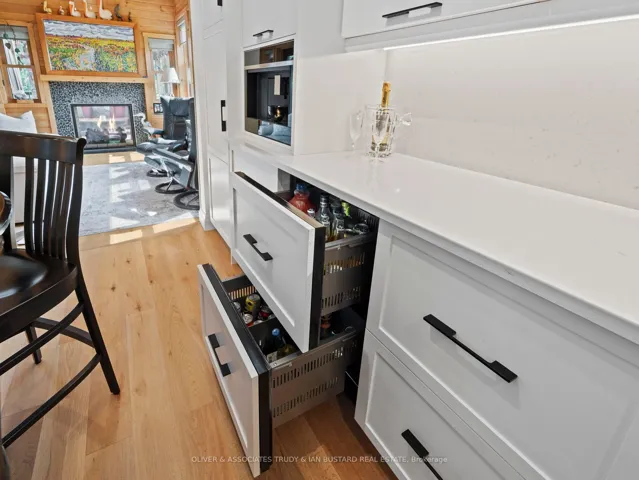 +"PublicRemarks": "Immaculate Former Show Home in Creek Side Place This stunning 4-bedroom, 3-bathroom bungalow once the Medway Homes model offers 1,541 sq. ft. on the main level plus 1,278 sq. ft. of beautifully finished lower-level living space with large storage room. Ideally located beside open green space and a tranquil pond, this home blends luxury, privacy, and smart design in one exceptional package. Thoughtfully upgraded with over $200,000 in premium features, including an extended kitchen with added cabinetry, built-in coffee maker, microwave, and two-drawer fridge, recirculating pump, roughed in central vacuum. The bright sunroom with two-sided fireplace, tray ceilings, and oversized windows creates a warm, inviting atmosphere. Interior highlights also include Toto toilets, custom blinds, and a smartly designed laundry room that connects to the primary walk-in closet for seamless functionality. Step outside to a show stopping composite deck with pergola, three-sided privacy blinds, and a dog door for pet-friendly convenience. The fully fenced, professionally landscaped lot features a fire pit, outdoor shower, Generac generator, gutter guards, and a full irrigation system with 10 drip lines ideal for lawn, gardens, and hanging baskets. Shed has electricity. 30 amp breaker for RV. A rare bonus: the adjacent municipal lot is maintained and enhanced with mature trees planted (with approval) for maximum privacy and scenic enjoyment. This home is a true gem in Creek Side Place move-in ready, meticulously maintained, and built for indoor comfort and outdoor enjoyment. Quick access to downtown and beach is a foot bridge at the end of Creek Side that brings you out at Tim Horton's."