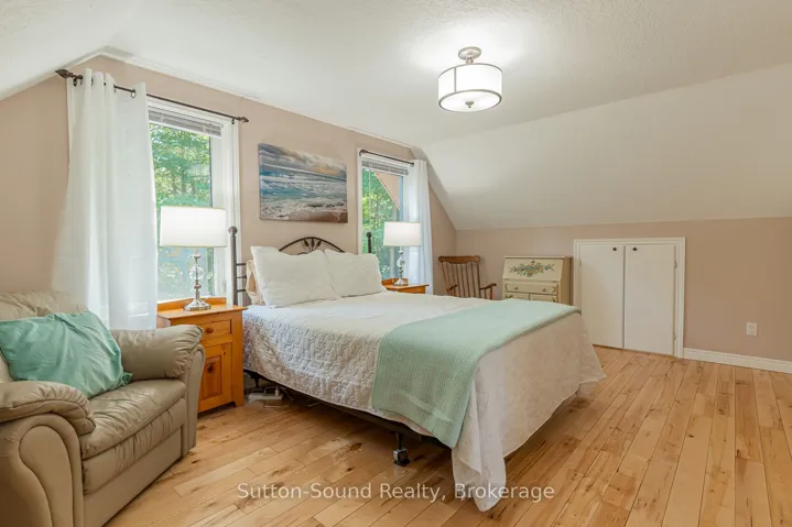 One owner, immaculate and fully furnished 4 bed 3 bath Sauble Beach retreat with Fibre Optic Internet and Natural Gas. Over 2100 finished sq ft of living space, situated on a half acre private lot with a large 2 car (600 sq ft)detached, insulated and heated shop/garage. As you drive up the circular, paved drive you will find the most meticulous and well cared for lawn and perennial beds in a completely private setting where you can spend the afternoon under the trees or on the wrap around 800′ of no maintenance composite decking with plenty of room to entertain plus a sunken hot tub to enjoy after a long day at the beach. As you enter the gorgeous, low maintenance Natural Log Sided home you will find pride of ownership in every room. The open concept main floor living area is flooded with natural light, compliments of the wall of windows, a bright updated kitchen with white cabinets and black sparkling granite countertops complete with all newer stainless appliances(2022) and high end plumbing fixtures. On the main level you will also find 2 nice size bedrooms, laundry room a 4 piece bath and gorgeous solid maple flooring throughout. Head to the upper level where you will find a large primary suite offering tons of closet/cabinet space, a 4 pc ensuite bathroom and a compact/bright office cove at the top of the stairs. Next find your way to the fully finished lower level to enjoy a relaxing rainy day indoors! Waiting there is a generous size games room with both a pool table and shuffle board (incl), large extra bedroom, office/den and a 3rd 2 pc bathroom. Bathrooms all have high end plumbing fixtures and granite counters. Incase you need extra space to store your lawn and garden tools there is a 10’x16′ garden shed plus another 10’x32′ fully insulated outbuilding offering another 480 sq ft of space for extra storage or could be easily transformed into bunkies for overflow guests. All you need to do is move in and enjoy!