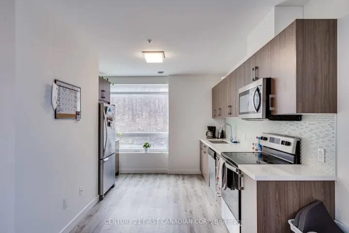 +"PublicRemarks": "Experience stylish urban living in this luxurious 2-bedroom, 2-bath condo featuring 9-ft smooth ceilings, modern vinyl flooring, and a bright open-concept layout with oversized windows. The sleek kitchen showcases a contemporary backsplash, premium finishes, and six appliances, including an in-suite washer and dryer. Step out to your private balcony for fresh air and a relaxing view. The primary bedroom offers a generous walk-in closet and direct balcony access-a rare combination of comfort and convenience. Ground-floor living means effortless entry, ideal for professionals, young families, or downsizers seeking ease and style. Perfectly located near public transit, highways, restaurants, and major amenities. This suite also includes underground parking and a flexible 2026 closing. This is premium living with unbeatable accessibility. Schedule your private tour today-opportunities like this move fast!"