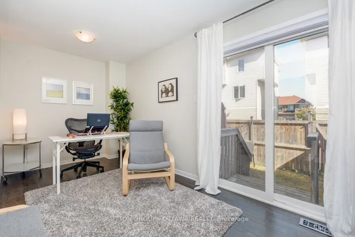 +"PublicRemarks": "Located on a private, coveted court, this rare and spacious townhome in Stittsville perfectly combines comfort, style, and bold design. Step inside to discover a bright main floor with 9-foot ceilings and oversized windows that fill the living and dining areas with natural light. At the front, a versatile space serves perfectly as an office or den ideal for working from home, extra seating, or even a dining area.The kitchen is beautifully designed with ample cabinetry, stainless steel appliances, a breakfast bar, and a cozy eating nook perfect for family meals or entertaining guests. Between the floors, SEPARATE FAMILY ROOM featuring vaulted ceilings, a warm gas fireplace, and elegant California shutters The expansive primary bedroom includes a walk-in closet and a well-appointed ensuite with both a soaking tub and a separate shower. Two additional large bedrooms, two linen closets, a second bathroom, and a convenient laundry area complete the upper level.The WALK-OUT basement is sure to impress, offering a generous amount of flexible space for recreation, a future in-law suite, or additional living areas.Step outside to a fully fenced, low-maintenance, south-facing backyard that enjoys all-day sun perfect for relaxing or entertaining outdoors.Ideally located within walking distance to parks, trails, and some of the best schools in the area, this home truly is the perfect place to call your own!"