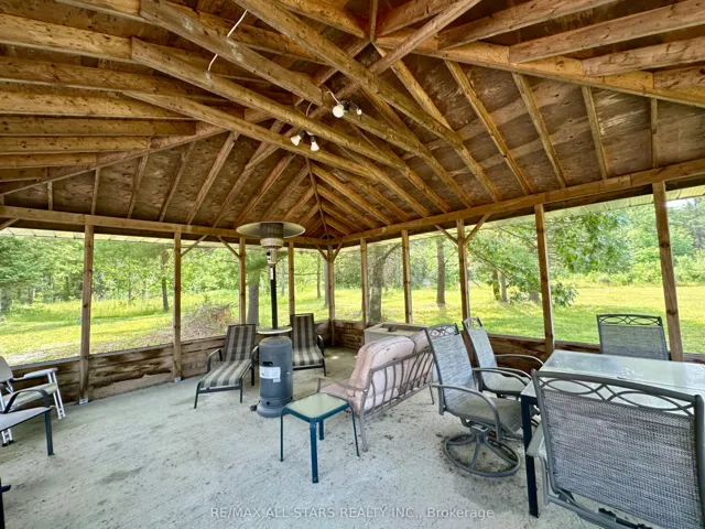 +"PublicRemarks": "Welcome to Your Private Off-Grid 393 acre homestead; offering complete privacy, modern comforts, and endless outdoor adventure. This unique property features a well-built off-grid cabin powered by a full solar system and Generac backup, with a drilled well, septic system wood & propane stove for heat along with propane wall units. Inside, you'll find a spacious open-concept layout with a large kitchen, dining, and living area, perfect for entertaining or relaxing in comfort. The cabin includes 4 bedrooms and 3 bathrooms, featuring a generous primary suite with walk-in closet, en-suite bath, and private walkout to a deck overlooking the forest. A double attached garage sits on one side of the building, with a single attached garage on the other, plus a large workshop/storage area for all your tools and toys. Enjoy outdoor living with a screened-in gazebo on a poured concrete pad, and a natural stone patio with built-in BBQ. The property is a paradise for nature lovers and outdoor enthusiasts, featuring extensive trail networks, abundant wildlife including deer, turkey, and bear, and multiple ponds. Whether you're looking for a full-time off-grid lifestyle or a remote family getaway, this property delivers unmatched space, comfort, and natural beauty. Only 15 minutes to Bobcaygeon. Close to all amenities."