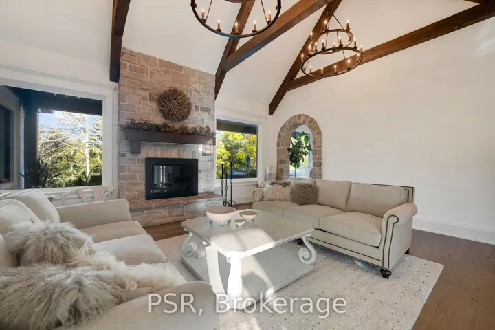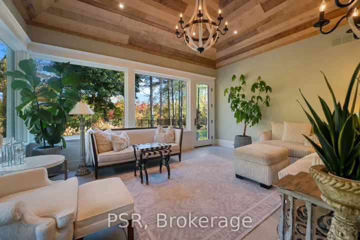 +"PublicRemarks": "Experience Refined Living In This Exquisite Estate Nestled In The Heart Of Historic Niagara On-The-Lake. Set On Nearly Three Acres Of Lush, Wooded Grounds, This Custom-Built Home Embraces A Modern French Country Aesthetic And Offers Unparalleled Privacy Just Moments From The Lake. Stroll To Nearby Boutiques, Acclaimed Restaurants, Theatres, And Golf Courses, And Enjoy The Vibrant Lifestyle That Makes This Community So Sought-After. Step Through An Impressive Stone Entryway Into A Grand Foyer Illuminated By Sparkling Crystal Chandeliers, Immediately Setting A Tone Of Sophistication. The Formal Living Room Invites Cozy Gatherings Around A Beautiful Cast Stone Gas Fireplace, While The Expansive Great Room Captivates With Vaulted Ceilings, Exposed Beams, And Abundant Natural Light Streaming Through Oversized Windows. A Charming Sunroom Offers A Peaceful Sanctuary For Morning Coffee, And The Upper Deck Complete With A Gas Fireplace Creates A Perfect Backdrop For Intimate Evenings Under The Stars. The Gourmet Kitchen Is Designed To Inspire Culinary Creativity, Featuring Granite Countertops, Premium Appliances Including A Sub-Zero Refrigerator And Wolf Induction Cooktop, And A Generous Walk-In Pantry. The Main-Level Primary Suite Provides A Serene Retreat With Spacious Walk-In Closets And A Spa-Inspired Ensuite Adorned With Luxurious Finishes. The Lower Level Reveals An Entertainers Paradise With A Family Lounge, Direct Access To A Pool Deck, Sauna, Hot Tub, And A Temperature Controlled Wine Cellar. Four Additional Ensuite Bedrooms Ensure Comfort And Privacy For Family And Guests Alike. Impeccably Landscaped Gardens Surround The Estate, Offering A Stunning Outdoor Setting Ideal For Entertaining Or Quiet Relaxation. This Extraordinary Home Seamlessly Blends Timeless Elegance With Modern Comforts, Making It Truly One Of A Kind In Niagara-On-The-Lake"