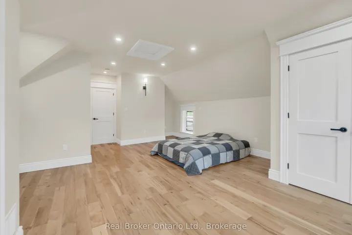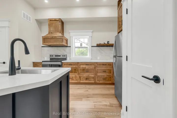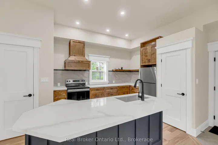 Welcome to 16 Hillcrest St W in Teeswater – a beautifully updated 2-bedroom, 2-bathroom home where small-town charm meets modern comfort. Nestled on a quiet street, this home features a timeless yellow brick exterior, new limestone-silled windows, and a welcoming wrap-around concrete porch. Inside, natural light pours through brand-new windows, highlighting the open-concept living and dining areas with maple hardwood floors and crisp white trim. The custom kitchen is a showstopper, complete with quartz countertops, new appliances, ample cabinetry, and workspace designed to inspire any home chef. Upstairs, the serene primary suite includes a walk-in closet and a private laundry closet, while the second bedroom offers flexible use as a guest room, office, or den. The 3-piece bath showcases a quartz vanity and spa-like finishes, complemented by a convenient main-floor powder room. The lower-level workroom – with garage door access – is ideal for hobbies or storage. Step outside to a spacious wrap-around deck overlooking a lush yard that extends to the picturesque Teeswater River. Additional features include a 2-car attached garage, updated exterior and garage doors, soffit, fascia, eaves, solid wood interior doors with Weiser hardware, and modernized electrical and plumbing systems. This move-in-ready gem blends peace, style, and practicality – your perfect escape awaits.