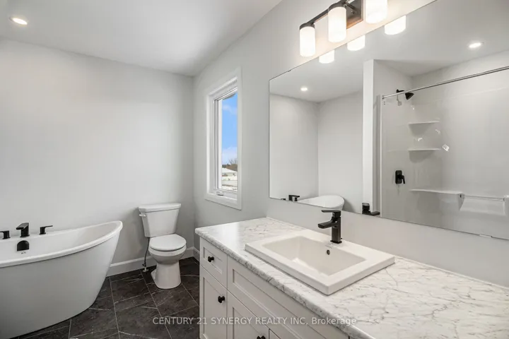 Beautiful Modern Farmhouse! Built by a trusted local builder, this stunning semi-detached 2-storey home offers approximately 1,761 sq. ft. of thoughtfully designed living space. Featuring 3 bedrooms, 3 bathrooms, and a spacious double-car garage, there’s plenty of room for your vehicles and country toys. The main floor boasts an open-concept layout with quartz countertops, a large 9-ft island with breakfast bar, and a walk-in pantry-perfect for cooking, entertaining, or family gatherings. Enjoy luxury vinyl flooring throughout the entryway, living room, dining room, kitchen, bathroom, and hallway, while plush carpeting adds comfort to the upstairs bedrooms. The primary suite features a generous walk-in closet and a 4-piece ensuite. The second and third bedrooms are spacious and include ample closet space. A full bathroom and convenient second-floor laundry complete the upper level. Outside, unwind on the massive covered porch-a perfect spot to enjoy peaceful country evenings. Complete with central A/C for year-round comfort & eavestrough. No Appliances included.