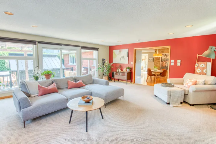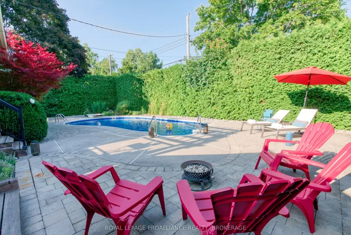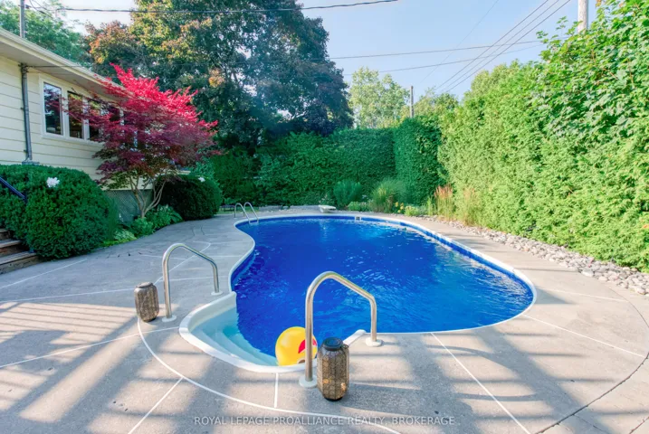 Lovely well-appointed elevated bungalow in the desired Fairway Hill community located on the edge of Kingston’s most prestigious golf course, Cataraqui Golf and Country Club, and a short walk to Lake Ontario Park, plus fast access to Downtown Kingston, St Lawrence and Queen’s U. This spacious mid-century home offers a gorgeous private in-ground pool, two tired cedar deck, hardtop gazebo perfect for entertaining. Renovated kitchen with quartz, farmhouse sink, gas stove, loads of cupboards, electric fireplace for ambiance and loads of natural light. The large family room addition overlooks the beautiful backyard with surrounding windows and is a haven in every season. There is a separate side entrance perfect for an in-law suite. Other features include: two gas fireplaces, a double-wide driveway that fits four cars easily, a double car garage with a lift for accessibility assistance, an irrigation system, a newer pool liner with a newer pool heater, a new owned hot water tank, and so much more.