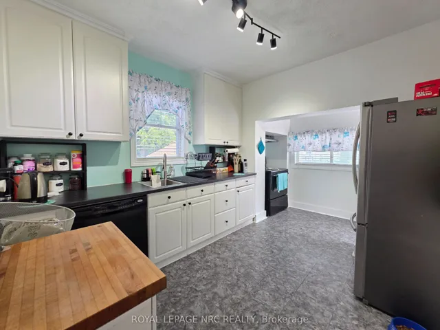 Welcome to Historic Bridgeburg where you will find quaint shops, restaurants, and a wide variety of services available all on your way to the shore of the Niagara River just a 10 minute walk from your front door. This brick and vinyl sided home offers two main floor bedrooms, a full 4 piece bath, good-size working kitchen, two large main floor rooms that could be interchangeably either a livingroom or diningroom, with convenient access off the kitchen to the driveway, garage, very generous back yard, and a bonus “Toy Garage” measuring 13’8″x11’8″. Upstairs could be an in-law suite or a primary bedroom getaway with it’s own livingroom, 2 bedrooms and a 4 piece bathroom – just add a small kitchenette to the livingroom or in one of the two bedrooms and Mom/Dad/Adult kids can have their own private space. The basement has so much to offer with its own 4 piece bathroom, a great size recroom big enough for a pool table and still more area for a separate media room/craft room/office space/family room, lots of storage space, plus a huge workshop! Some original stained-glass windows pay homage to the character of the original home, while updates and the addition provide added living space and offers modern conveniences. The hot water gas boiler heating system, as well as the double-layer plywood, ice-damning over all the plywood, and new shingles were all replaced in approximately 2010. This homes features include carpet-free throughout, a 200 amp breaker panel, large cold cellar, a single car detached garage, large paved driveway, fabulous commuting location close to the QEW, parks/schools/churches close by, pool-sized backyard that is almost fully-fenced – most fencing is about 6 years old, newer soffit and facia, double-wide front door entry for ease of moving in your furniture and saying – I’M HOME!!!