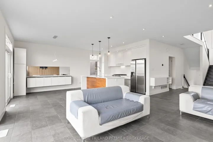 +"PublicRemarks": "Welcome to this stunning two-storey home located in the desirable Foxfield subdivision of Northwest London. This beautifully built residence offers 4 spacious bedrooms, 3.5 bathrooms, and a fully finished walk-out basement, perfect for extended family living or entertaining. Backing onto a peaceful ravine, the backyard offers a private, nature-filled retreat with scenic views year-round. Inside, you'll find contemporary finishes throughout, a thoughtfully designed layout, and plenty of natural light. The open-concept main floor features a bright double height foyer with built-in storage; kitchen with breakfast bar, custom cabinetry and stainless steel appliances; 2-piece powder room; great room with custom accent wall; dinette with direct access to a deck perfect for BBQ, and convenient main floor laundry with additional access to the backyard. The upper level boasts 3 generous bedrooms (privacy film/UV film installed on bedroom windows), including a primary suite featuring a walk-in closet with custom organizing system and 4-piece spa-like ensuite with double sinks, linen closet, and large tiled shower with glass enclosure. Sip your morning coffee overlooking the ravine on the main levels deck with glass railing or on the lower patio/deck with pergola. Enjoy the convenience of a double-car garage and the quality craftsmanship that sets this home apart. Custom blinds on most windows, and hardwood flooring/stairs throughout. A rare opportunity to own a ravine lot in one of Londons most sought-after neighbourhoods don't miss it!"