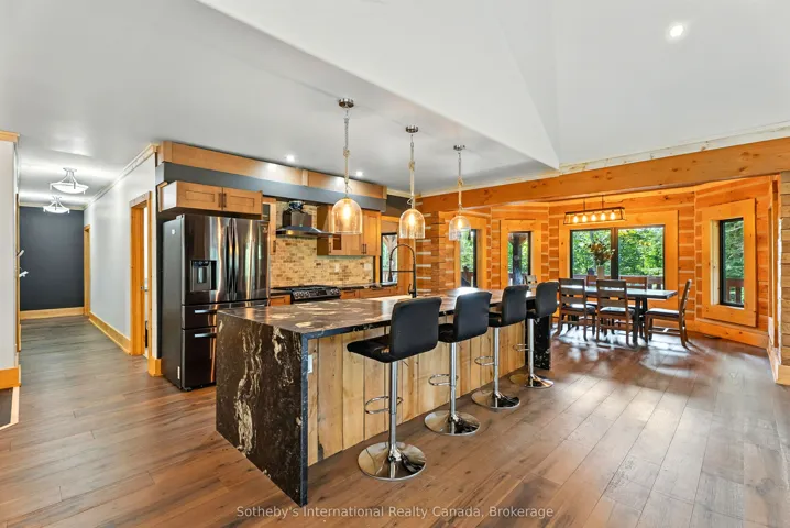 +"PublicRemarks": "Charming Custom Log Home on Nearly 10 Acres located just minutes from both Baysville and Huntsville, 5 minutes from a public boat launch on to Lake of Bays and close to both snowmobile and ATV trails, Welcome to your dream retreat, This stunning custom-built log home sits on an ICF lower level. offering the perfect blend of privacy and accessibility. As you approach via Brunel Road, you'll feel the stress of everyday life melt away amidst the beautiful natural surroundings. Step inside, and you'll be greeted by a bright and airy atmosphere that feels inviting and warm. With five spacious bedrooms and three beautifully appointed bathrooms, there's ample room for family and guests perfect for entertaining or enjoying quiet evenings at home. The main level features an open-concept living space with vaulted ceilings, allowing for a spacious feel that's perfect for gatherings. The kitchen is ideal for gourmet meals or enjoying casual snacks. Large windows invite natural light, creating a cheerful ambiance throughout the home. The lower level boasts a separate apartment complete with its own kitchen, living area, and two additional bedrooms. This space is perfect for multigenerational living, a nanny suite, or as a lucrative Airbnb opportunity. Imagine the possibilities with two distinct living areas, each with its own entrance. ideal for hosting family and friends or generating rental income. With nearly 10 acres of absolute privacy, this property is a nature lovers dream. Explore the great outdoors, enjoy wildlife sightings, or simply relax in your hammock with a good book while under almost 2000sqft of covered deck and patio . The flexible layout caters to a variety of lifestyles, whether you're looking for a family home, an investment opportunity, or a peaceful retreat. Don't miss your chance to own this exceptional property that combines charm, comfort, and convenience. Your private paradise is waiting for you seize the opportunity today"