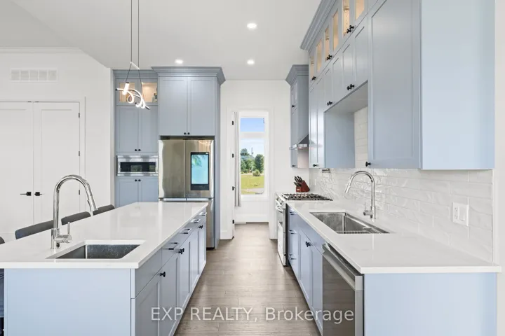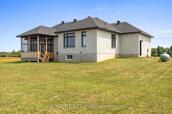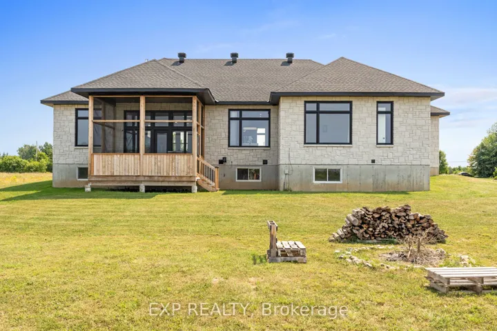 Welcome to this stunning all-stone 5-bedroom, 3-bathroom Energy Star-rated bungalow (2023), blending timeless style with modern comfort, set on a private 2-acre lot just minutes from historic Merrickville. With10ft ceilings on main level and 9ft on lower level. Step inside the beautifully tiled entry and you’re greeted with a bright, open layout where the gorgeous chefs kitchen and great room are the heart of the home. Dream kitchen for any cook, custom tall cabinetry, quartz countertops, massive island & breakfast bar, a second sink, plus top-of-the-line stainless appliances. Upgrades include gorgeous light fixtures, beautiful white textured tile backsplash, pot filler tap above stove, and pantry. The great room’s 11 ft ceilings, huge windows, stunning hardwood floors, and cozy fireplace create a warm, welcoming space for living and entertaining. The spacious primary suite a walk-in closet and a spa-inspired 5-piece ensuite with a soaker tub and glass shower. Two more bedrooms, plus a flexible room perfect for a home office or den, offer plenty of options for family or guests. A main floor laundry room and a mud room for more functionality. Professionally finished lower level with over 2,000 sq ft, Featuring large family room with fireplace, full kitchen/bar, perfect for hosting gatherings or accommodating extended family. Two additional large bedrooms, full bathroom and a huge rec room complete. Outdoors, unwind in the huge screened-in Muskoka room while taking in beautiful country views, or enjoy the open yard, future pool, gardens, play, or simply soaking in the peace and quiet. Massive 3-car garage tons room for vehicles, storage, etc. Boasting over 4,000 square feet of finished living space, this home offers the perfect blend of quality, comfort, and privacy, just a minutes from the historic rideau river and town of Merrickville with artists, restaurants, shops, dining, waterfall and rideau boat locks. This is truly peaceful paradise, you don’t want too miss.