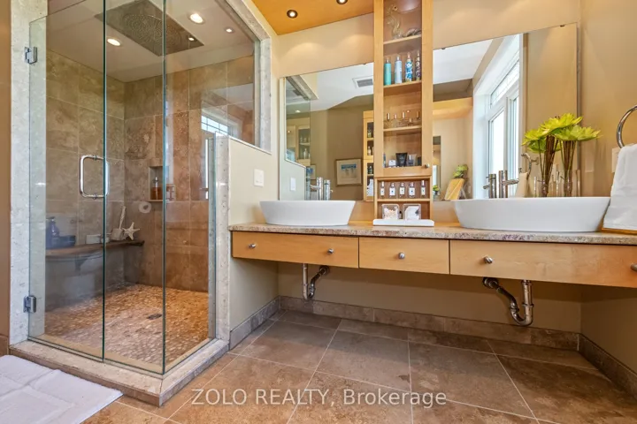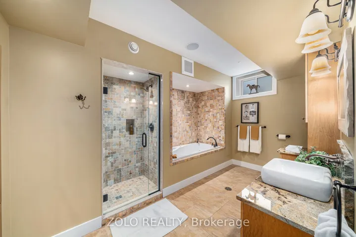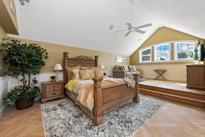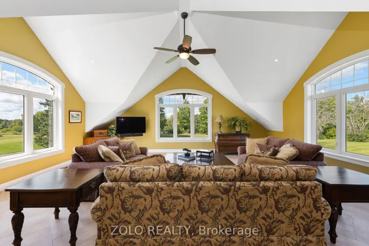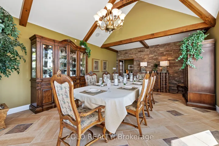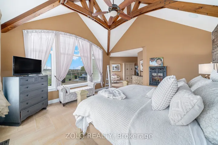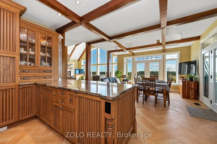 Nestled in a peaceful setting, this beautiful home effortlessly combines warmth and elegance, making it ideal for both single families and multi-generational living. Upon entering, you’ll be greeted by stone wall accents and impressive wood-vaulted cathedral ceilings that create an inviting atmosphere. At the heart of the home is the great room, featuring floor-to-ceiling windows that frame stunning views of the surrounding countryside. This versatile space is perfect for cozy evenings by the fireplace or lively gatherings, with an advanced home audio system that includes speakers throughout the house and outdoor areas. Enjoy classical music in the great room while rocking out on the veranda; the system allows for different input/output options in each space. The formal dining room stands out with three walls of windows, allowing natural light to flood the space and offering captivating views of the outdoors. Its an ideal environment for families to come together over meals and foster lasting bonds. Adjacent to the dining area, the gourmet kitchen is a delight, equipped with Viking Pro appliances and generous counter space, making cooking enjoyable for everyone. The family eating area opens seamlessly to a deck, perfect for outdoor dining and entertaining during warm months. Designed for flexibility, this home includes multiple bedrooms, ensuites, and comfortable sitting rooms. And a dog washing station for the family pet! The second-level lounge and lower-level gym can easily be converted into two extra bedrooms, accommodating single families or multi-generational setups. In this exceptional property, the thoughtful layout supports various living arrangements, creating a welcoming environment where families can create cherished memories. Whether you are a single family or a multi-generational group, this home is a perfect fit, blending comfort, elegance, and practicality.