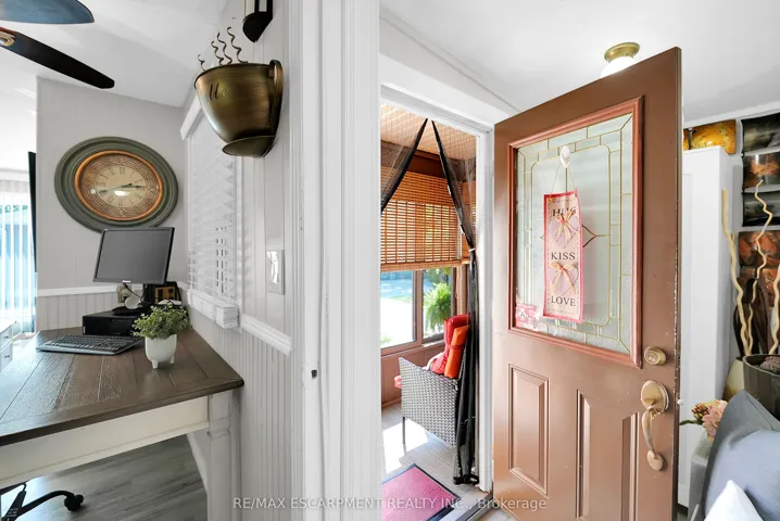 COMFORT, CONVENIENCE & COMMUNITY … Welcome to 4595 Martha Lane, located in the charming Golden Horseshoe Estates community, just minutes from the QEW, scenic vineyards, local restaurants, parks, and shopping. Only 10 minutes to the Grimsby GO Station, 30 minutes to Niagara Falls and the U.S. border, and just an hour from Toronto, its the perfect blend of small-town charm and big-city access. Step into the inviting screened-in front porch, perfect for enjoying a morning coffee, and walk into a bright mudroom leading directly to the UPDATED KITCHEN. Renovated just 6 years ago, the kitchen features modern appliances and durable vinyl flooring that flows seamlessly throughout the home. The spacious, sunswept living room boasts large, UPDATED WINDOWS that fill the space with natural light. Down the hall, find a versatile bedroom/den with the updated electrical panel, and a 4-pc bathroom conveniently located behind the laundry area. The primary bedroom offers a generous closet and houses the tankless hot water heater for added efficiency. Across from the laundry is a 4-SEASON SUNROOM with an abundance of windows, sunlight, and sliding patio doors opening to a private deck. Here, enjoy a large GAZEBO (patio furniture included), a Napoleon gas BBQ, and a wood pathway leading to the driveway. The PRIVATE YARD is a gardener’s delight, featuring numerous gardens and a unique double-shed setup – one large shed with hydro and loads of storage, and a smaller attached shed for extra space. A gated area behind the sheds offers added privacy. With a roof replaced 8 years ago, extra-insulated flooring, parking for 3 vehicles, and a pad fee of $737.86/month including taxes & water, this property blends comfort, function, and outdoor enjoyment in an unbeatable location. CLICK ON MULTIMEDIA for virtual tour, drone photos, floor plan & more.
