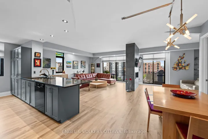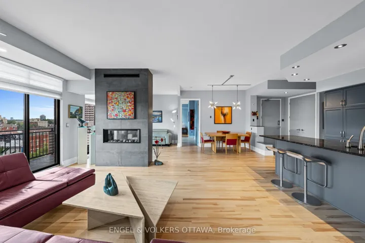 +"PublicRemarks": "Welcome to 1,492 sq. ft. of open-concept luxury living in the heart of Ottawa. Built by the award-winning Domicile Developments, this spacious 2-bed, 2-bath condo combines modern upgrades, premium finishes, and unbeatable convenience just steps to shopping, dining, transit, parks, and entertainment. Enjoy light hardwood floors throughout and floor-to-ceiling south-facing windows that fill the home with natural sunlight. The expansive living room features a striking 2-sided natural gas fireplace, flowing into a versatile den with custom Hunter Douglas blinds. The dining space offers flexible configurations, while the chef-inspired kitchen includes ample counter space, a GE induction stove, Fisher & Paykel stainless steel fridge, and a whisper-quiet Bosch dishwasher. The large primary bedroom fits a king bed with ease and boasts custom blackout shades, decorative sliding doors, a walk-in closet with custom built-ins, and a renovated ensuite with a separate shower. The second bedroom currently an office features a beautiful custom wood wall unit. The main bath has been completely modernized with a sleek stand-up shower. Step out to your private balcony with southern views and a natural gas hookup for year-round BBQing. Included: premium parking (extra space beside), storage locker, and access to the Commons Patio. Well-managed building no special assessments, none planned. Flexible closing available. Perfect for professionals, downsizers, or anyone seeking upscale, maintenance-free living in Ottawas most connected location."