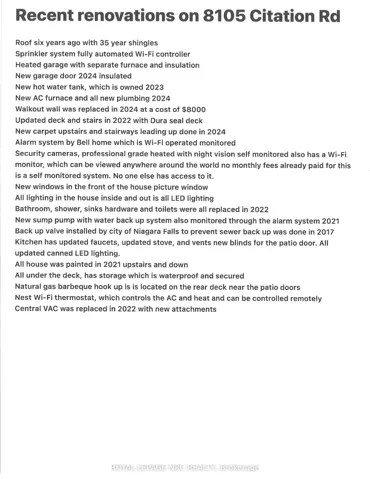 Welcome to this meticulously maintained 2+1 bedroom, 2-bathroom home in beautiful Niagara Falls! Built in 2000 and lovingly cared for by only its second owner, this move-in ready property offers comfort, space, and thoughtful updates throughout. The open concept living and dining room seamlessly flows into the kitchen, so you’re never far from your guests while entertaining. The large primary bedroom and spacious rec room with French doors and a cozy gas fireplace make it ideal for both relaxation and gatherings. Step outside through the kitchens sliding doors to your updated (2022) Dura-seal covered deck, overlooking a fully fenced and private yard with beautifully manicured gardens. An oversized shed under the deck provides excellent storage, along with plenty of space inside the home. Additional highlights include:1.5 car garage with new door (2024) and separate furnace & upgraded insulation, Walk-up from the utility room, Abundant storage inside & out Second owner home with pride of ownership throughout Be sure to view the full list of recent updates included in the photo gallery. This is a rare opportunity to own a lovingly cared-for home in Niagara Falls. Don’t miss your chance come see it today!