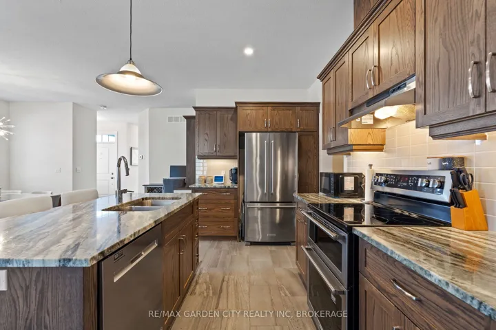 +"PublicRemarks": "Welcome to your Executive End-Unit Stacked Townhome by Mattamy. Live in sought-after Huron Park! Move-in ready and beautifully upgraded, this carpet-free home offers an open-concept layout with 9-ft ceilings and abundant natural light through large corner windows. Enjoy the upgraded 2-bedroom plan with a Juliet balcony. Each bedroom includes its own ensuite bath and walk-in closet for added comfort and privacy. The modern kitchen boasts granite countertops, a stylish tile backsplash, stainless steel appliances, and a separate pantry. Enjoy the convenience of in-suite laundry (stacked washer/dryer) and an oversized second-floor deck-ideal for relaxing or entertaining. Thousands in builder upgrades throughout, including two hardwood staircases, upgraded laminate flooring, granite counters, and a third bathroom. One owned parking space is located directly in front of the unit for easy access. Situated in the highly desirable Huron Park neighbourhood, you'll be steps away from scenic trails, greenspace, parks, shopping, restaurants, schools, and sports complexes. A perfect blend of modern design, premium finishes, and unbeatable location!"