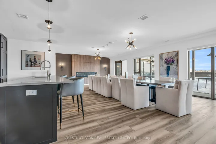 +"PublicRemarks": "Luxury Penthouse Living in the Heart of the Gaslight District! An extraordinary 2,300 sq. ft. residence created by seamlessly combining two expansive units. Spanning the entire side of the building, this one-of-a-kind three-bedroom, three-bathroom home offers breathtaking panoramic views of historic downtown Cambridge and the Grand River. Step into a grand foyer that opens into a sun-drenched, open-concept living space. Floor-to-ceiling windows bathe the home in natural light, while engineered hardwood floors add warmth and sophistication. The thoughtful layout includes pocket doors in every bedroom, maximizing both space and functionality. At the heart of the home is a chefs dream kitchen, fully upgraded with quartz countertops and backsplash, an oversized island, and premium finishes. Designed for both style and efficiency, this space is perfect for intimate dinners or lavish gatherings. The primary suite is a private retreat, complete with a spacious walk-in closet/dressing area with custom organizers and a large window. The spa-like ensuite boasts a walk-in glass shower and dual sinks, while sliding glass doors provide direct access to the penthouses expansive 100-ft. terrace. The second bedroom features floor-to-ceiling windows, a wall-to-wall closet, and its own private three-piece ensuite. A third generous bedroom currently configured as an office/den offers additional flexibility. This extraordinary residence also features a wraparound balcony accessible from every room, offering spectacular sunrise and sunset views over the city skyline and Grand River. Additional features include two underground parking spaces (one with an EV charging station), two private storage lockers, and access to state-of-the-art amenities: a rooftop terrace, private dining room, fitness center, yoga & Pilates studio, and an elegant lobby."