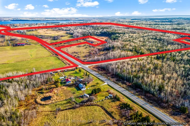 Rare opportunity to own 340 acres of versatile farm land on Manitoulin Island! Located minutes outside of the town of Manitowaning, on the shores of Manitoulin Island with 165ft of direct water frontage on the bay. This unique package consists of three parcels of land, of which 100 acres are workable with loam soil, 80+ acres of pasture and the remainder is bush. Of the bushlands there is approximately 40 acres of Maple bush. Land is owned directly along both sides of Hwy 6, giving easy equipment access to all corners of the farm. The 2000sq.ft ranch style home offers a large covered front porch, 5 good sized bedrooms, and the space to raise a growing family while enjoying the scenery and lifestyle. Brand new electric furnace, WETT inspection on woodstove, and new breaker panel. The farm yard consists of three large barns for housing livestock, plus several dedicated outbuildings for equipment, workshop space, hay, and feed storage. With plenty of room to expand. All inclusions of equipment are negotiable. Desirable long term stable income is generated by a cell tower land lease of $7200 annually. This functional farm package checks all the boxes with a large home; proven income avenues; easy access to town amenities and schools; great mix of cropland, pasture, and bush; plenty of wildlife activity; and cottage worthy panoramic views.