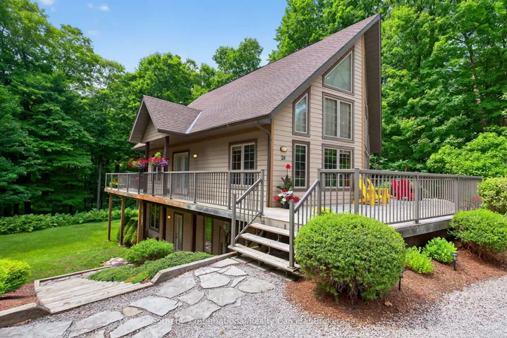 +"PublicRemarks": "Welcome to 28 Big Tree Circle, a stunning, architecturally designed home offering over 2,500 square feet of finished living space, including a total of 4 bedrooms and 3 bathrooms. Tucked away on a private 1-acre lot in a peaceful forest setting, this exceptional property is ideally located just minutes from the Mansfield Ski Club, Mansfield Outdoor Centre, and a short walk to the Boyne River perfect for all-season recreation. Enjoy easy access to scenic hiking and biking trails, the charming village of Creemore, and the vibrant town of Collingwood. Inside, this beautifully crafted home features gleaming maple flooring, a granite and maple kitchen, and an impressive open-concept living, dining, and kitchen area highlighted by a dramatic wall of east-facing windows that flood the space with natural light and frame the surrounding forest. The thoughtfully designed layout includes a private second-floor primary bedroom retreat complete with a 4-piece ensuite, a cozy sitting area overlooking the main living space, and a private deck nestled among the treetops. The main floor offers flexibility with a bedroom or office and an adjacent 3-piece bathroom ideal for guests or remote work. The bright, fully finished, above-grade walk-out lower level features two additional spacious bedrooms, a 3-piece bath, a large games room with a pool table, a cozy TV area, and an inviting porch sitting area perfect for enjoying your morning coffee or unwinding in nature. A detached double car garage provides ample space for vehicles, toys, and storage, while the loft above offers a perfect bonus area for your hobbies, studio, home office, or additional storage. Whether you're looking for a weekend getaway or a full-time residence, this exceptional home offers a rare combination of natural beauty, modern comfort, and an unbeatable location just one hour from Toronto Pearson International Airport and the GTA."