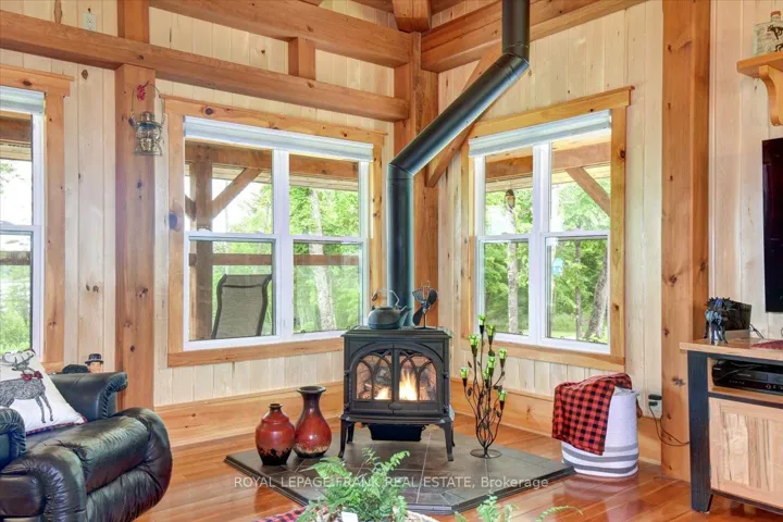 +"PublicRemarks": "Steenburg Lake! The complete package and more! This Timber Frame home is sure to impress. Amost 1800 square feet of living, with a full wrap around porch, perched perfectly over looking beautiful Steenburg Lake, with clean waterfront, all sitting on 86 acres of land with trails throughout. The waterfront is across the paved cottage road with a large dock system and newer floating boat house, big enough for a 22ft pontoon boat. There is a 30x40 heated shop, with drop down screen door system and a large covered area for extra storage. Hangout in the screened gazebo or chill on the wrap around porch. Extra features include: auto generator, central air, high efficiency furnace, underground sprinklers, alarm system with cameras, stainless appliances, hardwood flooring, a small pond with fountain and so much more. Recent upgrades include furnace, central air, roof and eavestroughs. This is a legacy type property that will be hard to match. Come take a look and you won't want to leave!!"