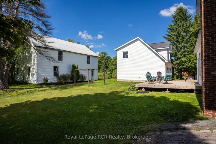 +"PublicRemarks": "Elegant century home on 1.85 acres with a double garage and barn on a beautiful lot. Incredible character and features with the necessary updates to make a grand and comfortable home. Formal dining room, living room with bay window, kitchen, a main floor bedroom, den, 4 piece bath and roomy foyer off the covered front porch. Grand staircase leads to the second level family room, a 2piece bath, and 3 bedrooms (one bedroom is 15x29). Lots of storage throughout the home. The detached garage is 26x28 with 2 roll up doors and a finished loft space with great light. Original 2 storey barn is 30x41 providing more storage or workspace options. Geothermal heat (approx. 12 years), updated electrical (approx. 7 years) and wired for generator, shingles and vents (2020). Located on a hard top road just steps to four-season recreational trails."