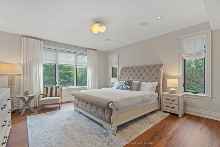 ***Motivated Seller – All Reasonable Offers will be Considered*** Welcome to Northern Lights, Muskoka’s premier luxury community nestled just outside Huntsville, Ontario – where refined living meets the breathtaking natural beauty of cottage country. This stunning craftsman quality-built home offers the perfect blend of upscale comfort and year-round adventure. Classic Muskoka architecture totalling approximately 5000 sq. ft. of finished living space, custom timber frame wood beams and floor to ceiling stone fireplace grounds the main floor creating a comfortable yet elegant cottage experience. Situated on a private 1.5 acre lot and less than 5 minutes from the sandy shores of Dwight Beach surrounded by pristine forests, provincial parks, golf courses, ski hills, and extensive biking and hiking trails, this home is a gateway to every outdoor pursuit imaginable. Spanning 5 spacious bedrooms -with approval in place for a 6th- and a fully finished basement, this home has been thoughtfully designed to showcase the best of pure Muskoka living. Inside, you’ll find premium upgrades throughout, including Bosch appliances, a gourmet kitchen, and a large Muskoka room that offers panoramic views of the surrounding natural beauty – perfect for morning coffee or evenings by the fire. Additional features include: Transferrable Tarion Warranty, Attached garage, Backup generator for peace of mind, Maintenance-free living, Built-in luxury finishes, Designer lighting and fixtures throughout. As part of the exclusive Northern Lights Community, homeowners will soon enjoy access to a brand-new clubhouse with resort-style amenities including an infinity pool, communal gathering spaces, and a lakeside dock-ideal for summer days by the water or hosting friends and family. Whether you’re seeking a year-round residence or a four-season retreat, this rare opportunity combines elegance, nature, and lifestyle in one exceptional package.