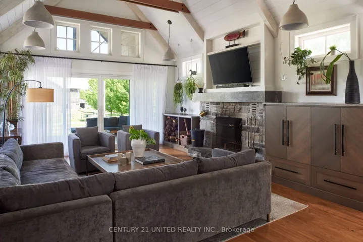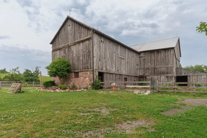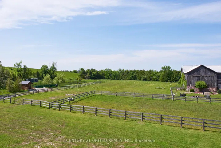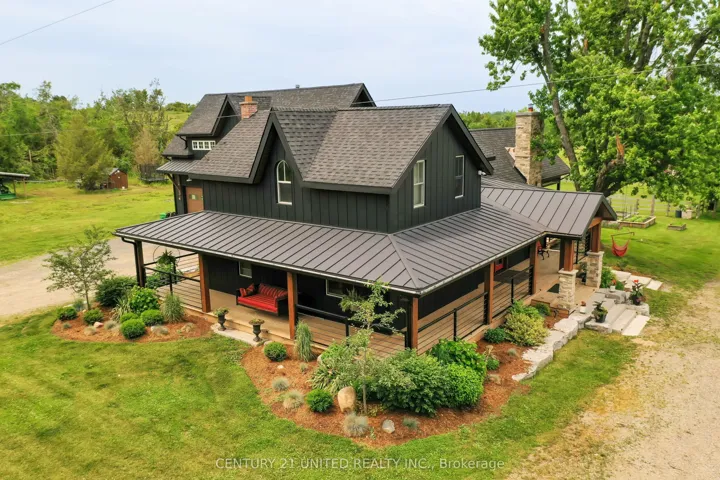 +"PublicRemarks": "Luxury hobby farm on 75 acres! Where contemporary design meets rural charm. No detail was overlooked in the renovation of the original farmhouse and addition (2020), exterior finished with striking matte black steel-clad, creating a one-of-a-kind country retreat. Inside, the great room boasts vaulted ceilings, a wood-burning fireplace, and expansive sliding glass doors with breathtaking views. The main floor primary suite includes a spa-like ensuite, while upstairs offers additional bedrooms, an office, and a home gym. A private in-law suite above the three-car garage includes its own family room with propane fireplace, wet bar and balcony overlooking the property ideal for guests or multigenerational living. The garage and workshop provide ample space for hobbies and storage. Outdoors, enjoy multiple horse paddocks, a chicken coop, vegetable gardens, and a spring-fed pond with beach! The back deck features automatic screens to fully enclose the space, and the outdoor dining area is equipped with automatic all-season shades. Perfect for equestrians, nature lovers, or those seeking privacy, this property offers the ultimate blend of luxury and country living."