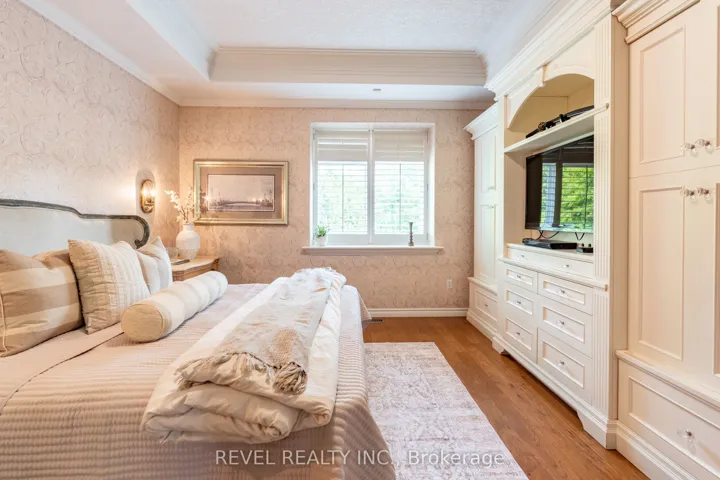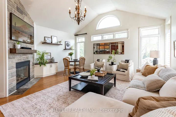 Welcome to luxury living on one of Waterloos most desirable courts! This custom-built all-brick bungalow by Milla Homes offers 3,330 sq.ft. of refined living space, highlighted by vaulted ceilings, hickory-style hardwood, and premium finishes throughout. The main floor showcases a spacious primary suite with tray ceiling, walk-in closet, and a spa-inspired ensuite featuring a whirlpool tub and glass steam shower. A versatile second bedroom or office is paired with a stylish 3-piece bath. The chefs kitchen is a showpiece with granite counters, stainless steel appliances, and a distinctive circular island opening onto the great room with a double-sided fireplace and formal dining area. The bright walk-out basement provides exceptional flexibility, ideal for an in-law suite or independent space for older children. Recently updated with new flooring, it features large windows, a kitchenette and bar with fridge, sink, and stove hookup, gas fireplace, two bedrooms, and a full bath. One bedroom is designed as a second primary suite, complete with walk-in closet and ensuite access, creating a perfect private retreat. Step outside to your secluded backyard oasis, offering professional landscaping, a large deck, in-ground pool with rock waterfall, hot tub, cabana bar, stone pathways, and full fencing for privacy. All this, just minutes to top schools, Molly Bean Playground, shopping, trails, and everyday amenities