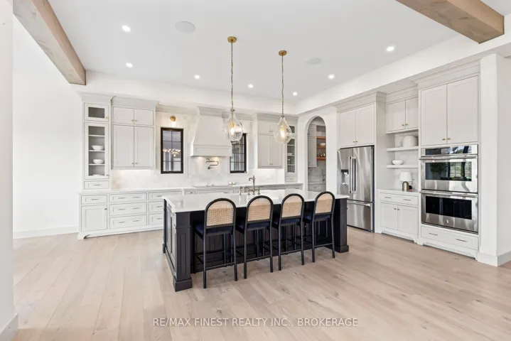 Welcome to 848 Windermere Drive – an executive custom-built home in one of Kingston’s most desirable neighbourhoods ! This meticulously custom crafted residence offers over 5000 sq. ft. of luxurious living space with high-end finishes and thoughtful upgrades throughout. From the grand timber frame front porch and 7.5 ft double entry door to the soaring 10 ft ceilings, every detail has been designed for elegance and comfort. The gourmet kitchen features solid wood Mennonite cabinetry, a massive 10 ft island, quartz countertops, Jenn Air appliances, and a walk-in pantry with a built-in coffee bar and live edge finishes. The great room impresses with wood beams, an oversized gas fireplace, custom built-ins, and a 18 ft patio door opening to a 12 x 30 covered timber frame deck. The main floor also includes a formal dining room, massive mudroom with heated tile, and a private office space. Upstairs, the primary suite boasts vaulted ceilings, dual walk-in closets, a spa-like ensuite with heated floors, a soaker tub, and a 5 x 6 ft steam shower. Three additional bedrooms include generous closets and ensuite or shared access to full baths — all with heated floors. The semi-finished basement offers 9 ft ceilings, a cold room, gym/bedroom, bath, and a custom-built entertainment bar – only a few items to complete to have a completely finished space! Additional highlights: hydrostatic heated garage slab, in-floor radiant heating, triple pane windows, engineered white oak floors, smart pre-wiring, and R60 insulation for superior efficiency. This home is a rare find –combining craftsmanship, technology, and timeless style in every corner!