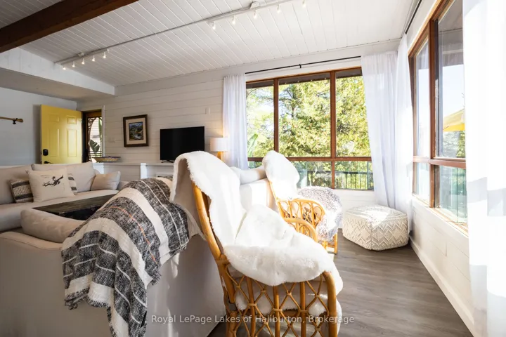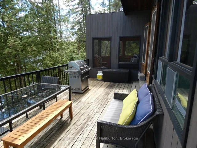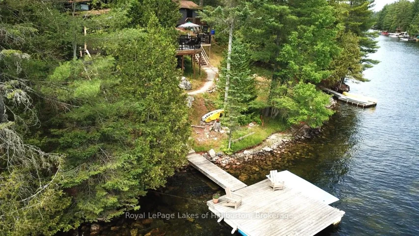 Discover the exceptional tranquility of this pristine Crystal Lake hideaway. A fabulous point lot with 2.26 acres and 300 feet of Algonquin style, rock and century pine waterfront that backs onto Crown Land. The 3-bedroom main cottage has a 3-pc bath and was extensively updated in 2022 and pairs seamlessly with a separate, self-contained guest bunkie featuring 2 bedrooms and a 3-pc bath, kitchenette, sitting area, laundry, and its own private deck, offering a combined living space of 1450 sq ft. This beautifully treed gem is tucked away at the very end of a privately maintained 3-season cottage road. A classic mid-century Viceroy style cottage offering a spacious open-concept interior with new high-end kitchen features including stone tops, soft close, impressive 9 ft harvest table and new appliances in 2022. A lovely screened in porch with a stunning view awaits. 14′ x 16′ storage shed. 200 AMP. Outdoor shower. Updated utility systems including plumbing, water heater, water filtration/UV, and water pump in 2022. The Shore Road Allowance (SRA) is owned. There is 2022 survey with buildings located. This ultra-private setting sets the perfect stage for enjoying one of the region’s most pristine lakes – with no neighbours in sight! Crystal Lake, a spring-fed glacial treasure, is defined by its iconic rock and pine shoreline with low cottage density. Enjoy full sunrises and long lake views. 26 easy steps or a gentle pathway leads to a pair of docks for exceptional deep water swimming. Excellent fishing for bass and lake trout. 30+ kms of shoreline to explore by boat, or take a quiet paddle into Iron Mine Bay. On-water marina. Kinmount’s amenities; including the Fairgrounds, Highlands Cinema, LCBO, groceries and ATV trails are 15 mins away. This 3-season property is 30-35 mins from Bobcaygeon/Fenelon Falls/Minden. Less than 2.5 hrs from the GTA. Bell 5G HS internet. This property exudes pride of ownership and is fully furnished and ready to enjoy yet this fall.