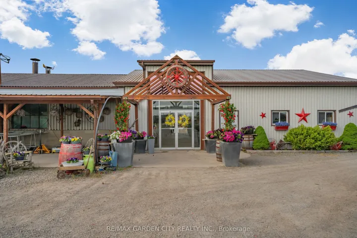 Incredible opportunity to own a versatile 9-acre property offering both residential comfort and commercial potential, ideally located just 10 minutes from the QEW and close to major roads and transportation routes. Boasting 351 ft of frontage and 874 ft of depth, this property is perfectly suited for agricultural use, greenhouse operations, or a live-work setup. The charming 1,315 sq ft home features 3 bedrooms, 1 bathroom, hardwood and tile floors, an unfinished basement, new 2025 Furnace & A/C, updated breaker panel, 1,800-gallon cistern, and high-speed fiber internet. A standout 54,000 sq ft glass Venlo greenhouse allows for year-round growing and is equipped with natural gas furnaces and 600V 3-phase power. The 3,200 sq ft insulated barn/storefront includes office space, a lunchroom, two cashier stations, and a walk-in coolerideal for on-site sales or agricultural business. Extras include two gravel parking lots, a rear gravel loading area, a covered outdoor bench space, a 140 x 110 pond that feeds the greenhouse, two sea cans for storage, a two-bay loading area, and a 6,000 sq ft fenced chicken coopproviding extensive infrastructure to support a variety of commercial and agricultural operations.