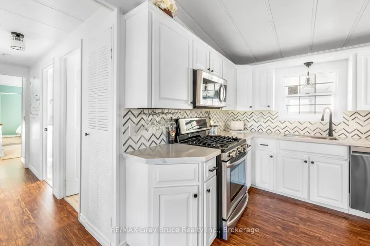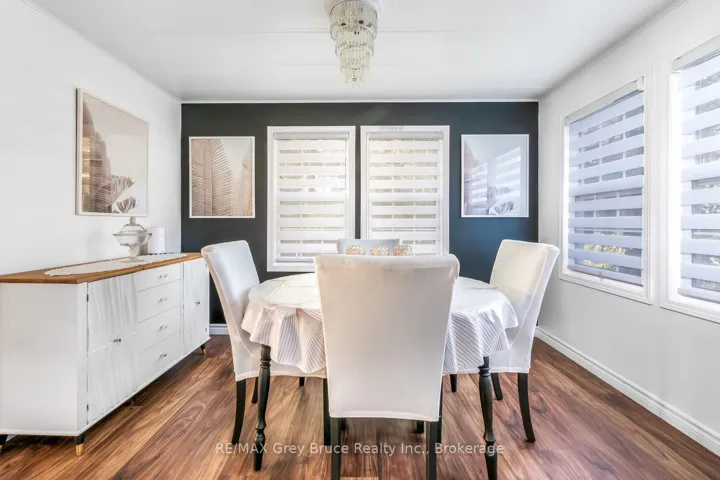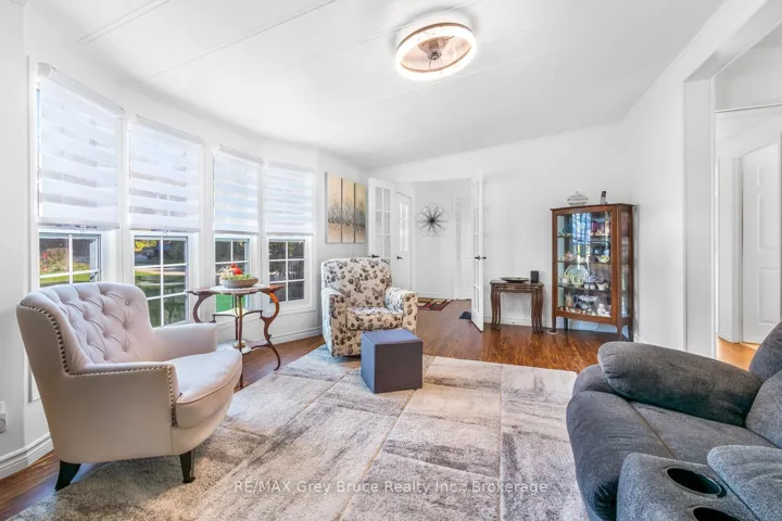 +"PublicRemarks": "Welcome to Bognor! This charming 2-bedroom, 1-bathroom modular home bungalow offers comfort, convenience, and an incredible view all on a spacious lot in the heart of this cozy hamlet. Step inside to find a bright, living room with pocket doors that connect seamlessly to the secondary bedrooms, creating a versatile and family-friendly layout. The large eat-in kitchen with updated counter tops is perfect for gatherings, while the primary bedroom features a generous closet and en-suite privileges to a recently renovated full bathroom. A sun-filled three-season room extends the living space, showcasing sweeping views and walkouts to the oversized yard. Outdoors, you'll find plenty of room to enjoy your hobbies whether its tending the gardens with the two garden sheds (8'x12' & 8'x8'), or unwinding in the fully finished he/she shed complete with electricity, heat, and AC. For those needing extra storage or workspace, a detached 2-car garage sits just steps away from the extended driveway. All of this comes with the peace and quiet of small-town living, yet just a short drive to Owen Sound, Blue Mountain, and all the amenities the region has to offer. Perfect for a someone downsizing, first time home buyer, or those seeking a peaceful retirement surrounded by nature! Contact your Realtor today to schedule a viewing!"