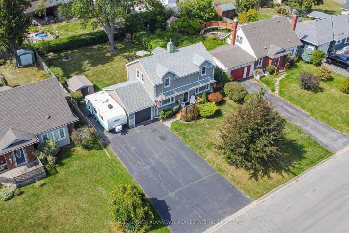+"PublicRemarks": "Nestled in a mature neighbourhood in the heart of Welland, this property not only has an unbeatable location close to parks and great schools, but also sits on a massive lot with a private backyard oasis surrounded by mature trees, not to mention the house itself is a perfect family home that is move in ready. At a first look you'll notice updated vinyl board and batten & stone veneer siding. All updated vinyl windows. New roof (2023). Head up the double wide asphalt driveway to a refinished front porch, surrounded by mature plants and shrubs including a Japanese Maple. Step inside to a welcoming foyer leading to the living room - bright and open space with large windows and built in storage. Formal dining room with custom trim work and engineered hardwood flooring. The kitchen faces the backyard with patio door access to a beautiful partially covered back deck. U-Shaped countertop design makes it super functional for the family. Easy for preparing meals and enjoying them together with the eat-in breakfast bar feature. Solid oak cabinets provide lots of storage, and newer stainless steel appliances are included. Bonus - office space in the kitchen with a desk & upper cabinets for a convenient "home office" set up. Back mud room located off the kitchen is great access from the side patio or garage into the kitchen. Bathroom on the main floor (2piece). Second level features 3 good size bedrooms, each with closets, and original hardwood flooring throughout. Bathroom on the second floor is a 4-piece with tub/shower combo. Basement is finished with a recreation room - great space for a man cave or for a kids playroom. Laundry room also in the basement with ample storage. Furnace (2021). AC (2016). 100AMP breakers. Attached garage. Fulled fenced yard. Close to the Seaway Mall, Niagara College, Niagara St shops, Primeway Centre, and HWY406. Don't miss your chance to own this prime real estate. This family home is waiting for you, book a showing to see for yourself."