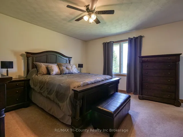 Introducing this stunning all-brick ranch style home, first time on the market and perfectly nestled on a serene 44.98 acre lot with 27 acres workable, 10 acres of bush, and an expansive 4-acre yard surrounded by picturesque fields and trees. This pristine property offers a generous 2703 sq ft of living space both above and below grade, featuring 3 well-appointed bedrooms, 3 bathrooms (including one roughed-in bathroom ready for personalization), and an office. The heart of the home boasts an oversized kitchen island with ample cupboard space, patio doors off the dining area and an electric fireplace in the living room for cozy evenings. The primary suite impresses with a 4-piece ensuite and dual closets. Entertainment is a breeze in the spacious recreation room, suitable for a pool table and a comfy TV area, alongside additional storage space and a large cold cellar. Exterior highlights include a covered front porch, a 26×23 ft attached 2-car garage, a 28×30 ft detached 2-car garage/workshop, and a fenced area for animals. Recent upgrades include a new water softener, hot water tank (2023), sewage pump, and recently pumped septic system (October 2023). With 40-year asphalt/fiberglass/mesh shingles (2008) and no need for a sump pump, this home is as practical as it is charming. Set against a backdrop of tranquility and privacy, don’t miss your chance to own this exquisite property. The land, having been last logged 27 years ago, also offers potential for future logging endeavors. Don’t miss out on the opportunity to own this beautiful ranch style home with plenty of land!