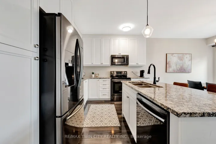 +"PublicRemarks": "Beautiful 3 Bedroom, 3 Washroom Recently renovated Townhome in West Brant. Located Minutes From Schools, Shopping, Trails,& Parks! This Home is Freshly Painted Open Concept Main Living & Dining W/Pot Lights & Eat In Kitchen With Quartz Counter tops and backsplash. Convenience doors At Rear Leads To Patio & Full Yard. 3 Generously Sized Bedrooms on 2nd Floor, Primary Bedroom Completed With 4 Pcs Ensuite & W/I Closet. 2 Other Good Size Bedrooms with 2nd Full Bath. Attached Single Car Garage W/ Convenient Inside Entry. 9 Feet Ceiling, New vinyl Flooring On The Main Floor. Lots Of Visitor Parking In Front Of The House."