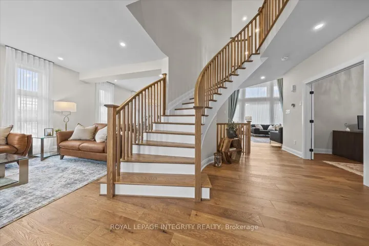 +"PublicRemarks": "Step inside this stunning detached 4+1 bedroom, 5-bathroom corner-lot residence where every detail has been thoughtfully designed with elegance and comfort in mind. A formal living room at the front of the home sets a refined tone and flows seamlessly into the sophisticated dining roomperfect for hosting dinner parties. The heart of the home is the soaring family room, open to a custom eat-in kitchen featuring premium upgrades, high-end appliances, a breakfast bar, and a walk-in pantry. A main-floor office provides the ideal setting for work or study. Timeless hardwood floors continue upstairs, leading to a serene primary retreat with a sleek 5-piece ensuite and spacious walk-in closet. Three additional bedrooms offer comfort and privacyone with its own ensuite, and the other two connected by a stylish Jack & Jill bath. The finished lower level extends the living space with a bedroom, full bath, and a rec room complete with a wet barperfect for family movies or hosting game nights. Ample unfinished space remains, ideal for storage or future customization. Step outside to a fully fenced backyard with an interlock patio. With a two-car garage, parking for 6, high-end finishes throughout, and a coveted corner-lot location, this home is the perfect blend of luxury and functionality."