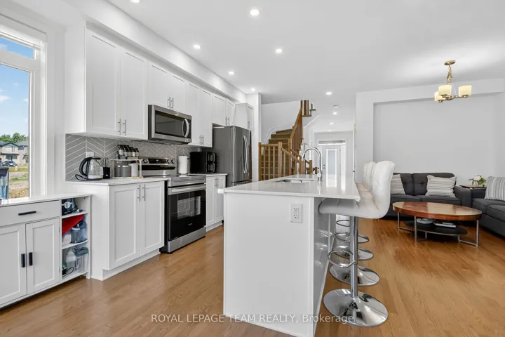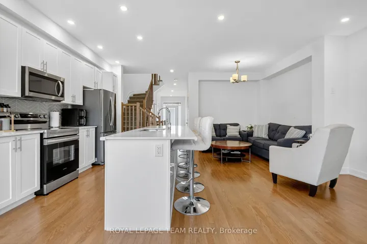 +"PublicRemarks": "Priced to Sell!!! Welcome to this Executive End-Unit Townhome in the family-friendly community of Findlay Creek. Built in 2021, this bright 3-bedroom home features a Stylish open-concept main floor boasting a bright living and dining area with hardwood floors, Quartz kitchen counters, large island, and stainless-steel appliances. Upstairs, the primary suite includes a walk-in closet and a stylish 4-piece ensuite. Two additional bedrooms and a full three-piece washroom complete this level. The lower level features a spacious family room, perfect for entertaining, home office or a gym. A separate room with ample storage and laundry room. Private backyard with no rear neighbors gives this backyard the tranquility and relaxation needed. Steps away from parks, schools and a short distance away from Findlay Creek Shopping Centre. Close to LRT Leitrim station and much more. This home is a must see!"