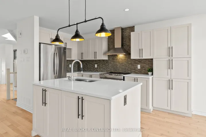 Beautifully Updated End-Unit Townhome in Barrhaven! Welcome to this immaculate 3 bedroom, 2.5 bathroom end-unit, perfectly situated in one of Barrhaven’s most sought after neighbourhoods Chapman Mills. From the moment you step inside, you’ll notice the fresh, modern feel of the home – recently painted throughout, with refinished hardwood floors that flow seamlessly across the main level.The spacious, open-concept floor plan is anchored by a newly renovated kitchen, featuring a large island, upgraded cabinetry, and stainless steel appliances, perfect for both everyday living and entertaining. A sweeping hardwood staircase leads to the second level, where you’ll find three generously sized bedrooms, including a primary retreat with a walk-in closet and private ensuite.The fully finished lower level offers an oversized family room with a cozy gas fireplace, rare leather plank flooring, a partial bath, and plenty of storage. Outdoors, enjoy the oversized lot with a large fully fenced backyard with deck, ideal for summer gatherings and family fun. Steps from schools, parks, shopping, and public transit, this home offers the perfect blend of style, comfort, and convenience. Move in ready and designed to impress!