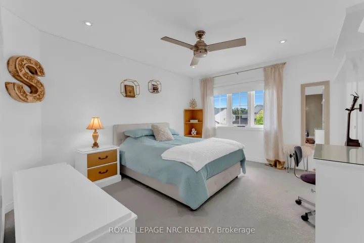 +"PublicRemarks": "Custom-Built Renaldi Home - First Time Offered! Tucked away on a quiet cul-de-sac, this thoughtfully designed 5-bedroom, 4-bathroom home (all bedrooms located on the second floor, with one currently used as an office) showcases high-end finishes and exceptional attention to detail throughout. Situated on a large triangular shaped lot measuring 82.47ft. x 124.04ft. x 131.92ft. x 38.91feet. Inside, you'll find solid Brazilian cherry hardwood floors and staircase, a custom mahogany kitchen with quartz counters and a separate dining area, ceiling speakers, 9-foot flat ceilings, transom windows, and over 100 pot lights. Two bedrooms feature private en-suites, and walk-in bedroom closets provide ample, organized storage. The main-floor living room offers flexibility as an office or an additional bedroom. Customized closets are found throughout the home, along with features such as, an upgraded powder room, a cold cellar, and high-efficiency HVAC system and solar attic vents. The main floor laundry has been converted to a mudroom with custom cabinetry (hookups for the laundry are still in place if one desires to return the laundry to the main floor). The double car garage featuring extra ceiling height for storage offers convenient interior access through this mudroom. Outside, enjoy your morning coffee under the covered patio with louvered roof and integrated lighting. Additional exterior features include in-ground sprinklers, landscape lighting, and extensive backyard electrical work already in place for a future pool or hot tub. The professionally finished exposed aggregate driveway rounds out the curb appeal. Every detail has been carefully considered in this exceptional home. A rare find!"
