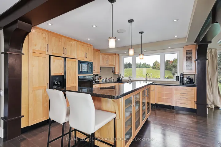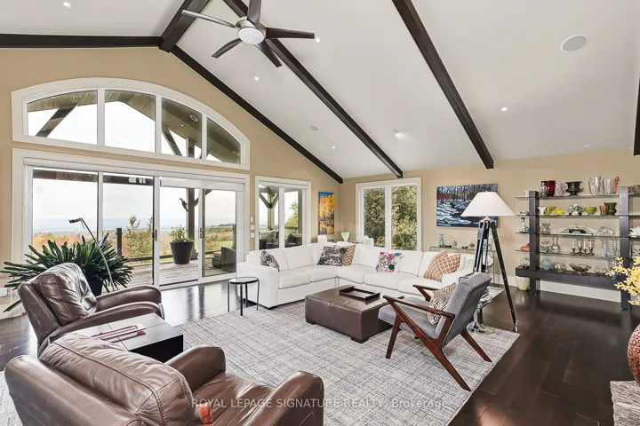 A nature lovers and gardeners paradise! 50 acres of fields and woodlot, unspoiled by pesticides for at least 48 years. The Bruce Trail, accessible at the rear of the Property, crosses the 1,000 acres bounded by the surrounding roads. In co-operation with adjacent landowners, a private trail system several kilometers long based on The Old Mail Road and old logging roads is used for hiking, horseback riding, and cross-country skiing. Your water is from an artesian spring, shared with a neighbour and with an uninterrupted flow for over a century, producing clear water free of the sulphur and iron found in wells lower in the valley. Early spring sees the emergence of watercress in the brook and wild leeks in the woods. The home is surrounded by gardens of perennials with a large vegetable garden and shed. Located on the edge of the Escarpment, a spectacular view of the Beaver Valley with breath-taking sunsets is visible from your living room and outdoor hot tub. The home was rebuilt in 2007 around a double-sided 2-storey fieldstone fireplace, the centrepiece in a cathedral ceilinged Great Room. Attached is a 2 car garage, essential for the winter months. In addition to the 5 bedrooms, for a multi-generational family, an extension has been designed to add a self-contained 1-bedroom granny flat with additional parking underneath, also with a view of the valley. For added security, a 12kw propane generator starts automatically in case of a power failure. The 12th Line has little traffic, not being a through road, however it is on the school bus route, receiving early morning snowplowing in the winter. Privacy and recreational opportunities are blended with accessibility to the nearby Ravenna Country Market, known for it for its baked goods and essentials. The present owners hope the new owners will enjoy the lifestyle of this unique property as much as they have for almost 50 years!