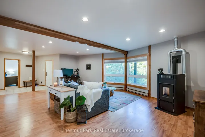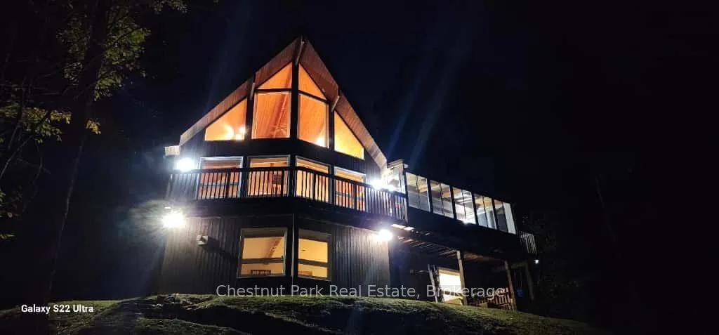 +"PublicRemarks": "Your Next Muskoka Adventure Awaits Welcome to your dream chalet on coveted Point Ideal Road in Dwight. Nestled on 4.73 private acres, this exceptional 3,000 sq. ft. retreat blends rustic charm with modern comforts, creating the perfect four-season escape.Whether your days are spent swimming in Lake of Bays, skiing at Hidden Valley, or exploring endless snowmobile trails, you will love returning home to the serenity of this forested haven.Step inside to a welcoming foyer with ample space for all your gear. The great room sets the tone with soaring vaulted ceilings and a dramatic floor-to-ceiling stone propane fireplace the heart of true Muskoka living. The bright, open-concept kitchen with built-in appliances flows seamlessly into the dining area and out to a screened-in Muskoka room, ideal for summer dinners under the stars. A BBQ deck offers the perfect spot for casual gatherings overlooking the woods.The main floor features two spacious bedrooms and a full bathroom, ideal for family, guests, or multi-generational living. Upstairs, a private loft-style primary suite offers treetop views and a spa-inspired ensuite with Jacuzzi tub, water closet, and walk-in closet.The walkout lower level redefines basement living with high ceilings, a generous family room, an additional bedroom and bathroom, plus a sauna your personal après-ski or après-sun retreat. A newly installed pellet stove adds cozy, efficient warmth throughout.Enjoy peaceful woodland views, with seasonal glimpses of Lake of Bays, or take a short stroll down the road to swim and fish in its pristine waters. Point Ideal is quiet and perfect for long walks with your furry friends.This is more than a home it is a Muskoka lifestyle.Bonus opportunity: the adjoining 4.92-acre lot is also available for purchase at $239,999 + HST."